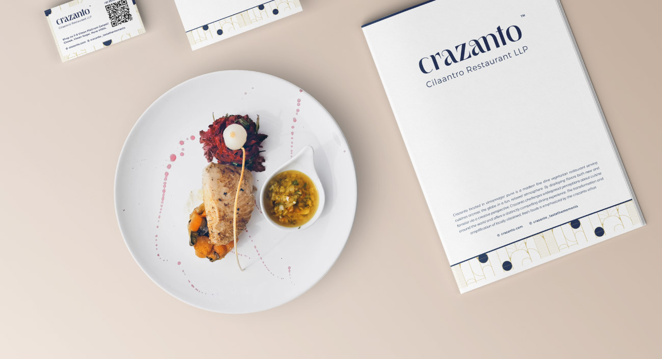 The elegance of the logo exudes an inviting and chic feel, and the vibrant color palette reflects the spark of craziness that defines crazanto. Our ongoing branding elements aim to capture this essence, ensuring a distinctive presence in the fine-dining scene.