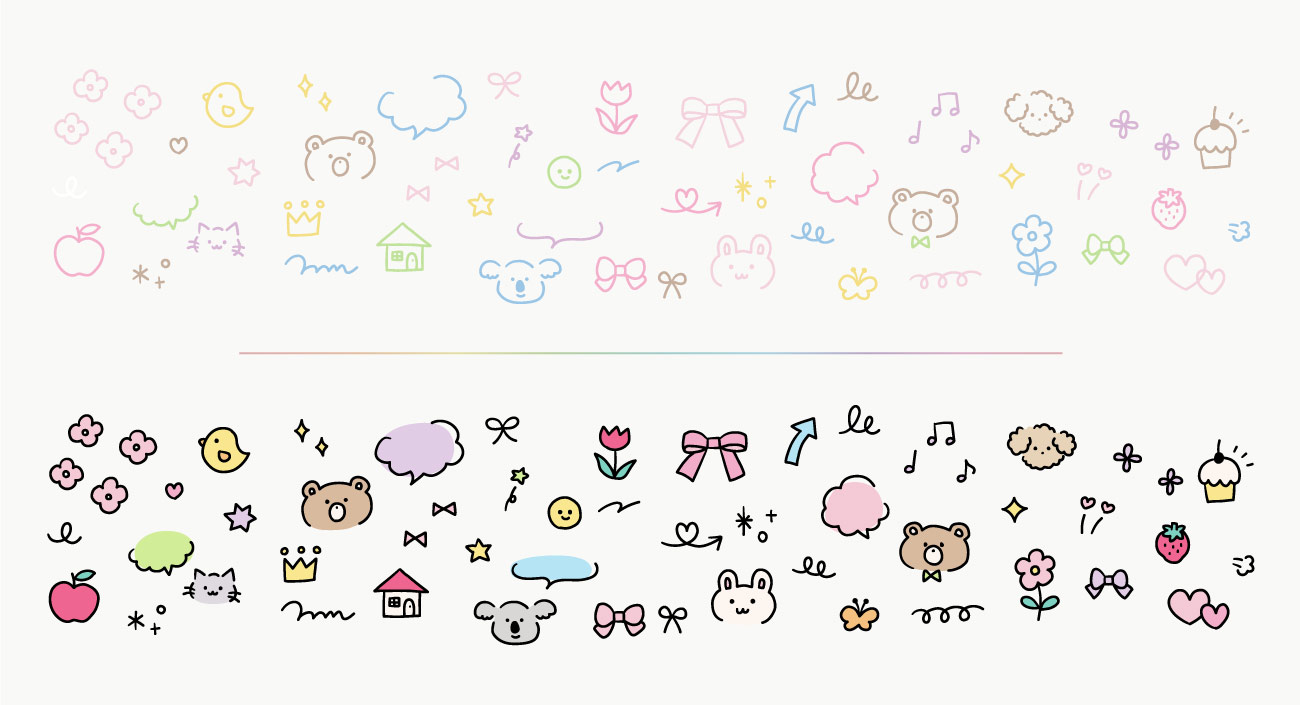 A carefully curated pastel color palette blending warm and cool tones ensures a gentle, soothing feel across all branding materials. Supporting illustrations, including bows, bears, flowers, and playful doodles, making them perfect for Instagram, product packaging, and digital assets.