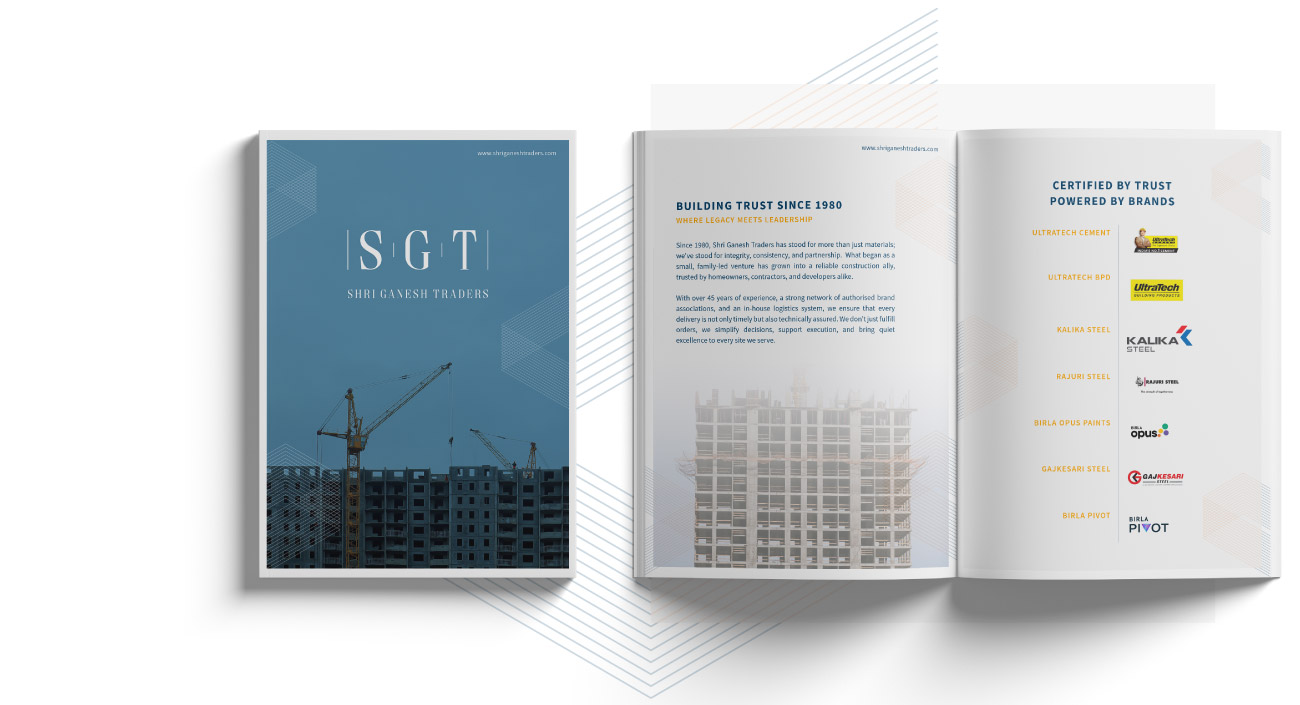 The Shri Ganesh Traders (SGT) logo has been designed to embody the company’s legacy of reliability and structured excellence. The clean typography and vertical separators between the initials convey order, discipline, and technical assurance qualities that define SGT’s 45+ years in the industry.